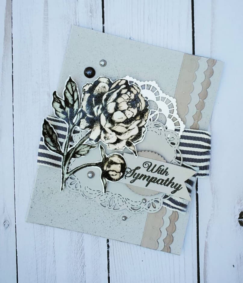 Anyways, so I was definitely pleasantly surprised to be contacted by SplitCoast Stampers telling me that I was chosen as this weeks’s Featured Stamper! How fun and exciting!!! So I decided to join in the fun and make a card cased from my own Gallery. Of course this is a sad card to make….I really need to make a bunch of these to have on hand from now on.